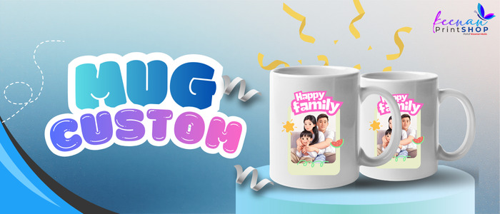 Mug custom dengan teknik sablon sublimasi yang menghasilkan cetakan tajam, warna cerah, dan menyatu dengan permukaan mug. Cocok untuk cetak foto, logo, atau tulisan sesuai keinginan. Terbuat dari bahan keramik berkualitas, aman digunakan untuk minuman panas maupun dingin. Pilihan tepat untuk hadiah, souvenir, atau kebutuhan promosi.